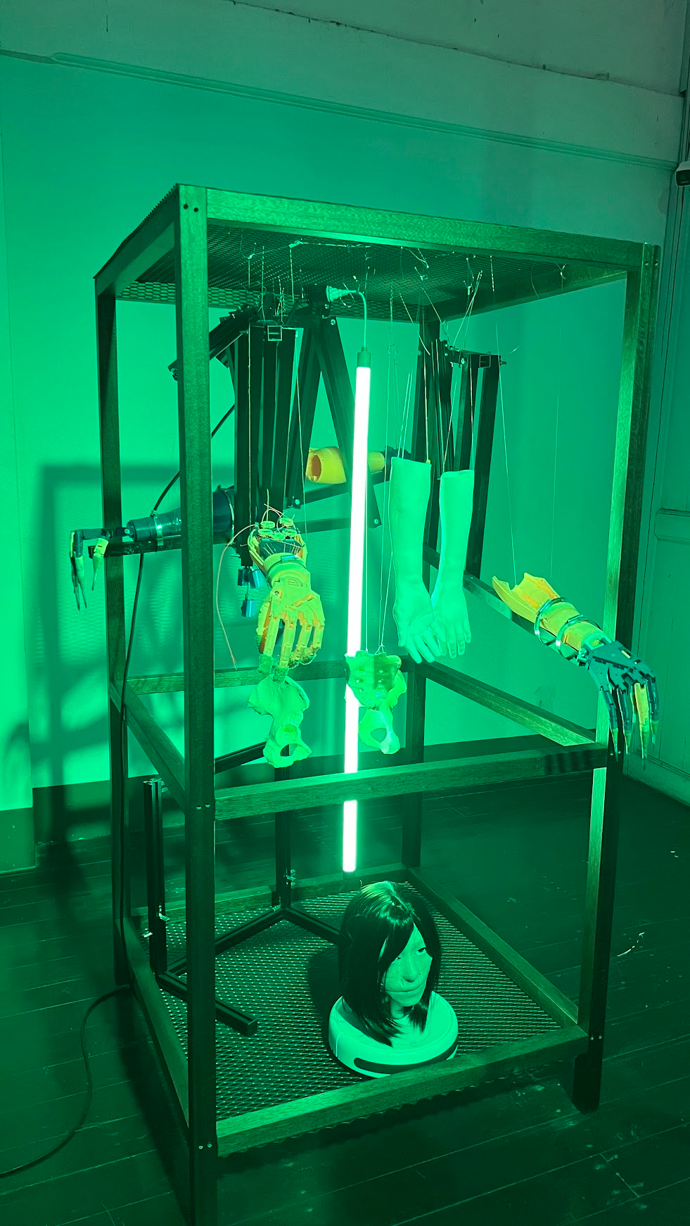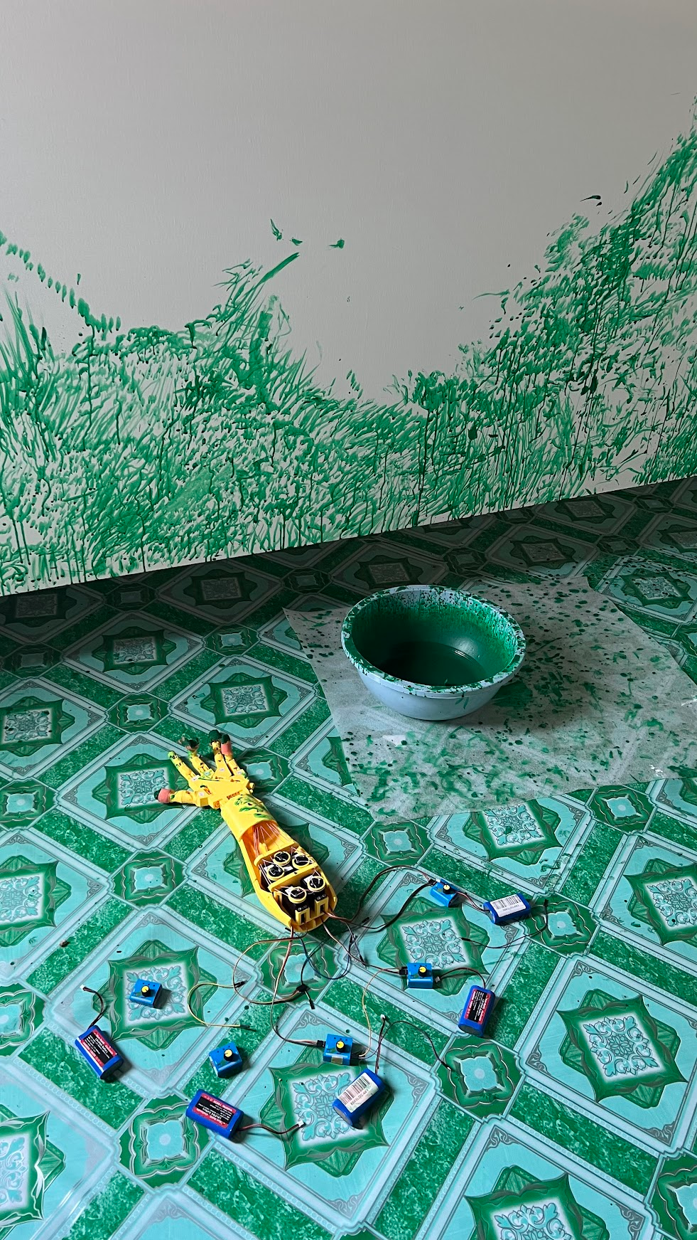 But as one moves to the second floor, Wilawan Wiangthong’s stark, cyber-themed works on labor fill the space with a jarring palette. The piece explores the struggles of female migrant workers within Phuket’s tourism industry, adopting the visual language of video games, high-tech armor, and science fiction. To me, a far more suitable venue for this work would have been the Imperial 2 Hotel, another Biennale site addressing similar themes through its related history. This sense of dissonance suggests that this commissioned art was not truly in sync with its surroundings — a gap that the ancient spirits of the house might find impossible to bridge.